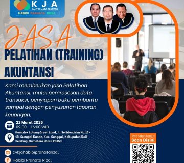 JASA PELATIHAN (TRAINING) AKUNTANSI!KJA Kantor Jasa Akuntan & Kantor Konsultan PajakJumat, 9 Mei 2025Kami memberikan jasa Pelatihan Akuntansi, mulai pemrosesan data transaksi, penyiapan buku pembantu sampai dengan penyusunan laporan keuangan. Langsung Hubungi 0811 ... Read More